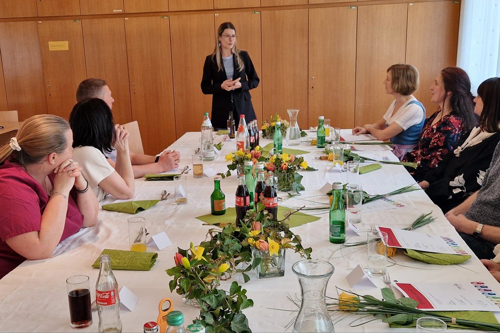 Bei der traditionellen Jubiläumsfeier im LPBZ Christkindl werden die MitarbeiterInnen und BewohnerInnen geehrt, die schon besonders lange im Haus arbeiten bzw. wohnen. Pflegedirektor Günter Schwarzlmüller begrüßte Garstens Bürgermeisterin Mag.a Katrin Krenn und ganz besonders die Jubilare, die schon 15, 20 oder sogar ein Vierteljahrhundert im LPBZ wohnen bzw. arbeiten, mit den Worten: „Heute feiern wir Menschen, die mit uns gelacht, gearbeitet, diskutiert, angepackt – und manchmal auch einfach nur tapfer durchgehalten haben. Kurz gesagt: Menschen, ohne die hier Vieles nicht laufen würde!“ Als kleine Anerkennung erhielten die Jubilare gelbe Rosen und Urkunden und sie wurden zu einem dreigängigen Festmenü in den Festsaal eingeladen.