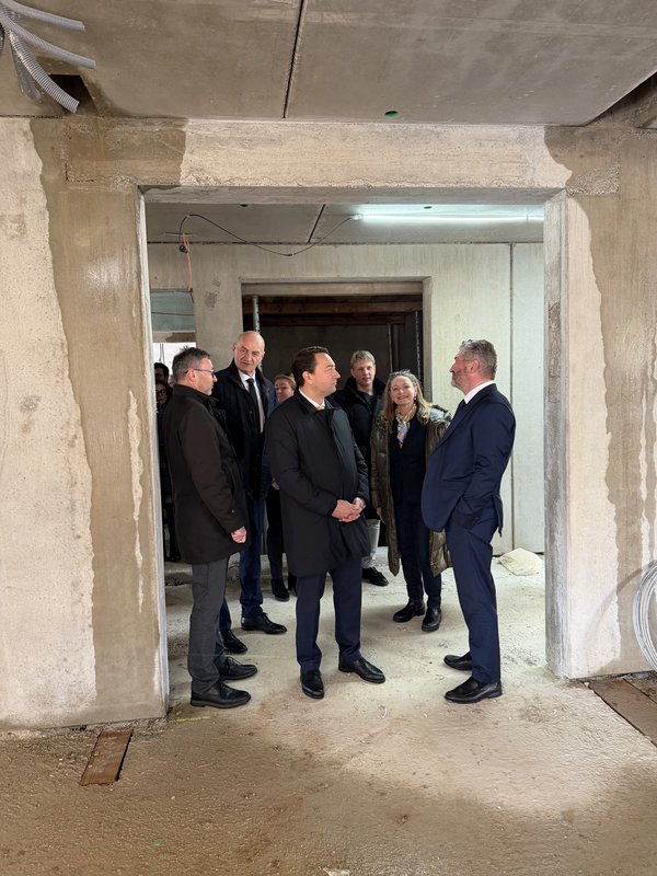 Beim Neubau in Christkindl wurde nun ein wichtiger Meilenstein erreicht: die Dachgleiche. Bei der traditionellen Gleichenfeier machten sich Landeshauptmann-Stv. Wohnbaureferent Dr. Manfred Haimbuchner, Sozial-Landesrat Dr. Christian Dörfel, Priv.-Doz.in Dr.in Annemarie Dieplinger, Geschäftsführerin der LPBZ GmbH, Dr. Harald Schöffl, Geschäftsführer der OÖG, und LPBZ-Christkindl-Dir. Mag. Horst Konrad ein Bild von der Baustelle. Mit dem Neubau entsteht ein modernes Gebäude, das Barrierefreiheit, zeitgemäße Pflegekonzepte und optimierte Betriebsabläufe ermöglicht.
