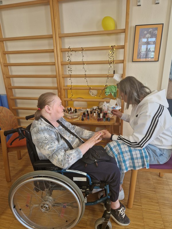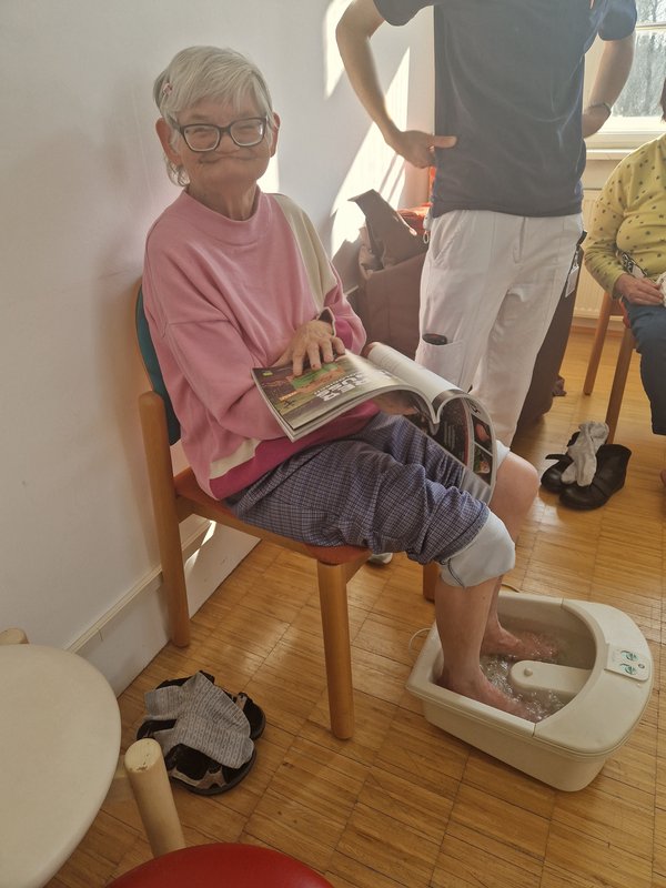 Die Therapie-Teams der beiden Standorte gestalteten ein buntes Programm: von sanften Hand- und Fußmassagen über wohltuende Paraffinbäder bis hin zu erfrischenden Gurkenmasken. Sanfte Musik am Klangbett, das warme Licht der Therapielampe oder frisch lackierte Nägel zauberten vielen Bewohnerinnen ein Lächeln ins Gesicht – und in den Räumen lag diese besondere Energie, die entsteht, wenn man sich umsorgt und wertgeschätzt fühlt. Auch einige männliche Bewohner genossen das Angebot.