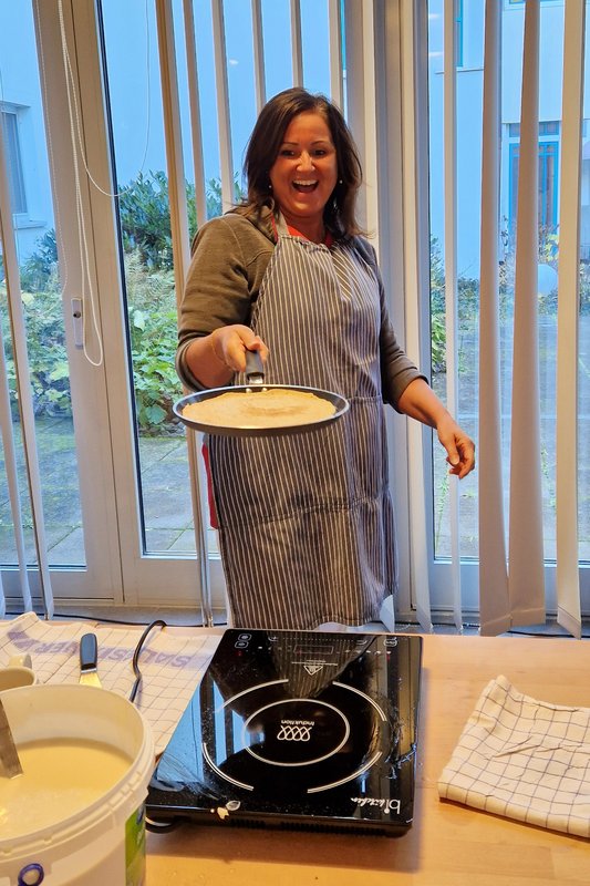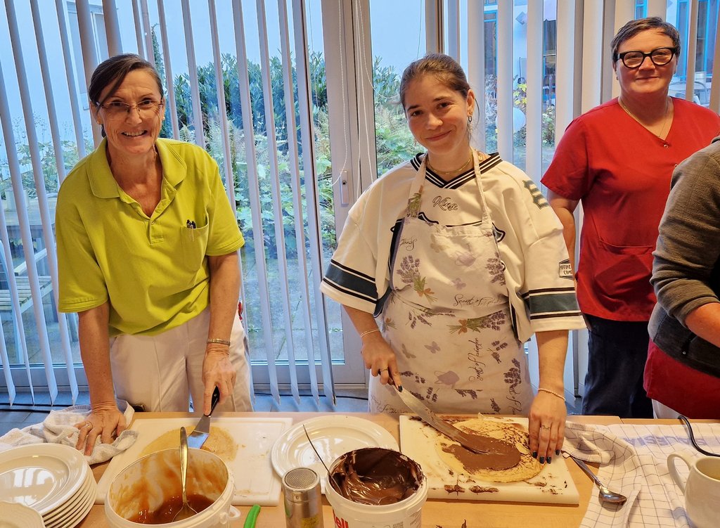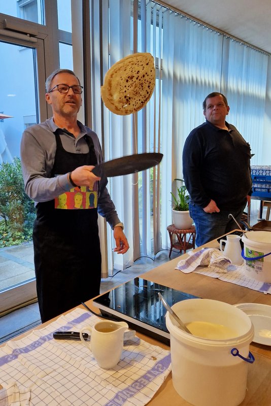 Viele MitarbeiterInnen und Dir. Horst Konrad haben wieder frische Palatschinken auf die Teller der Gäste im LPBZ Christkindl gezaubert und sie mit einer Tanzeinlage unterhalten. Je nach Geschmacksvorliebe wurden die Palatschinken mit Marillenmarmelade oder Nutella bestrichen, ein Häferl Kaffee dazu – einfach köstlich!