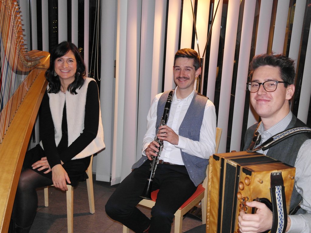 Rotary-Präsidentin Eva Pötzl, Margit Zauner, Dir. Horst Konrad vor Christbaum