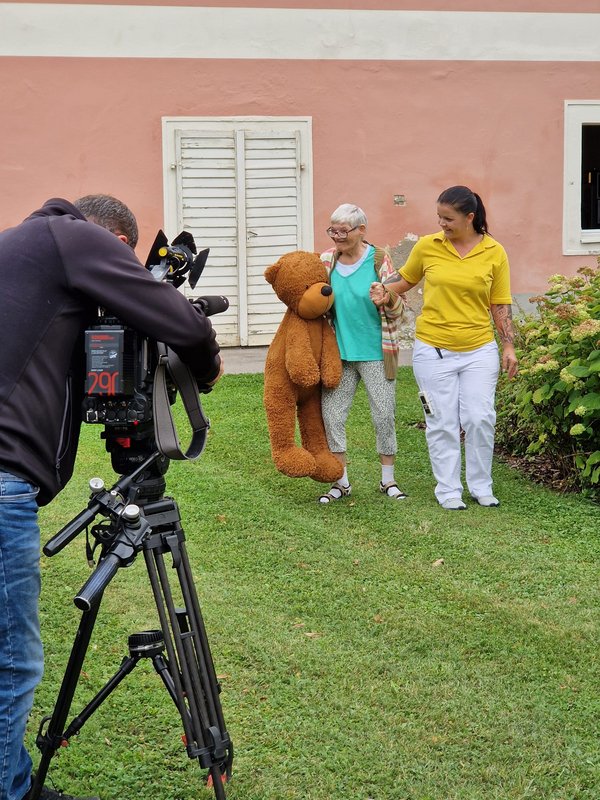 Kürzlich war ein ORF-Team zu Besuch im LPBZ Schloss Gschwendt in Neuhofen/Krems. Bei den Dreharbeiten im Schlossgarten zeigte sich einmal mehr, dass der Garten für die BewohnerInnen ein wichtiger Teil ihres Lebens ist. Tägliche Spaziergänge zu den Bienen oder Hochbeeten sprechen die Sinne an. Säen und Ernten im Jahreskreislauf ist ebenso wichtig wie die Natur zu bestaunen. Bewohnerin Christina Leitenbauer erzählt, dass es ein sehr gutes Gefühl macht, Pflanzen und Schmetterlinge zu beobachten.